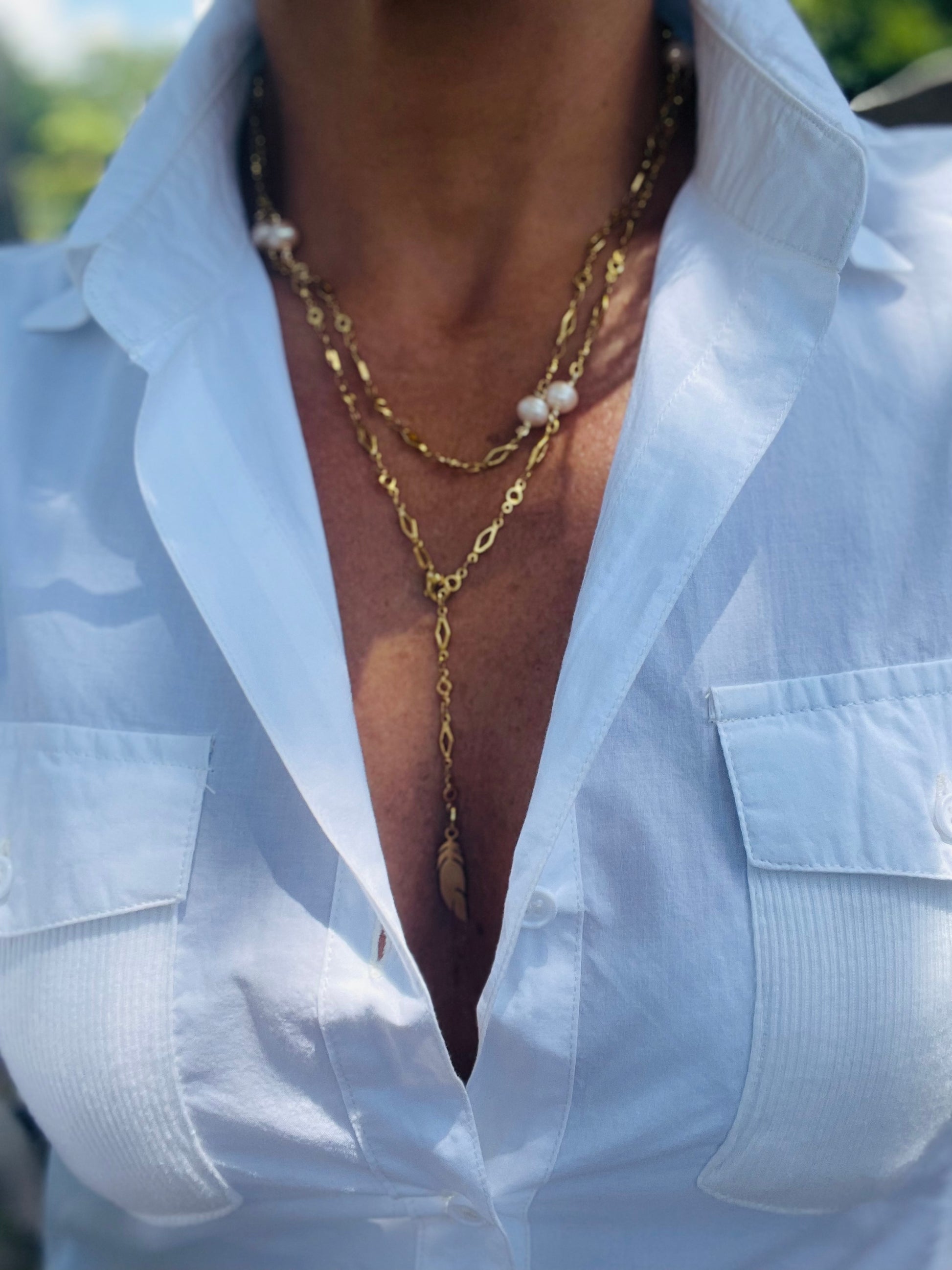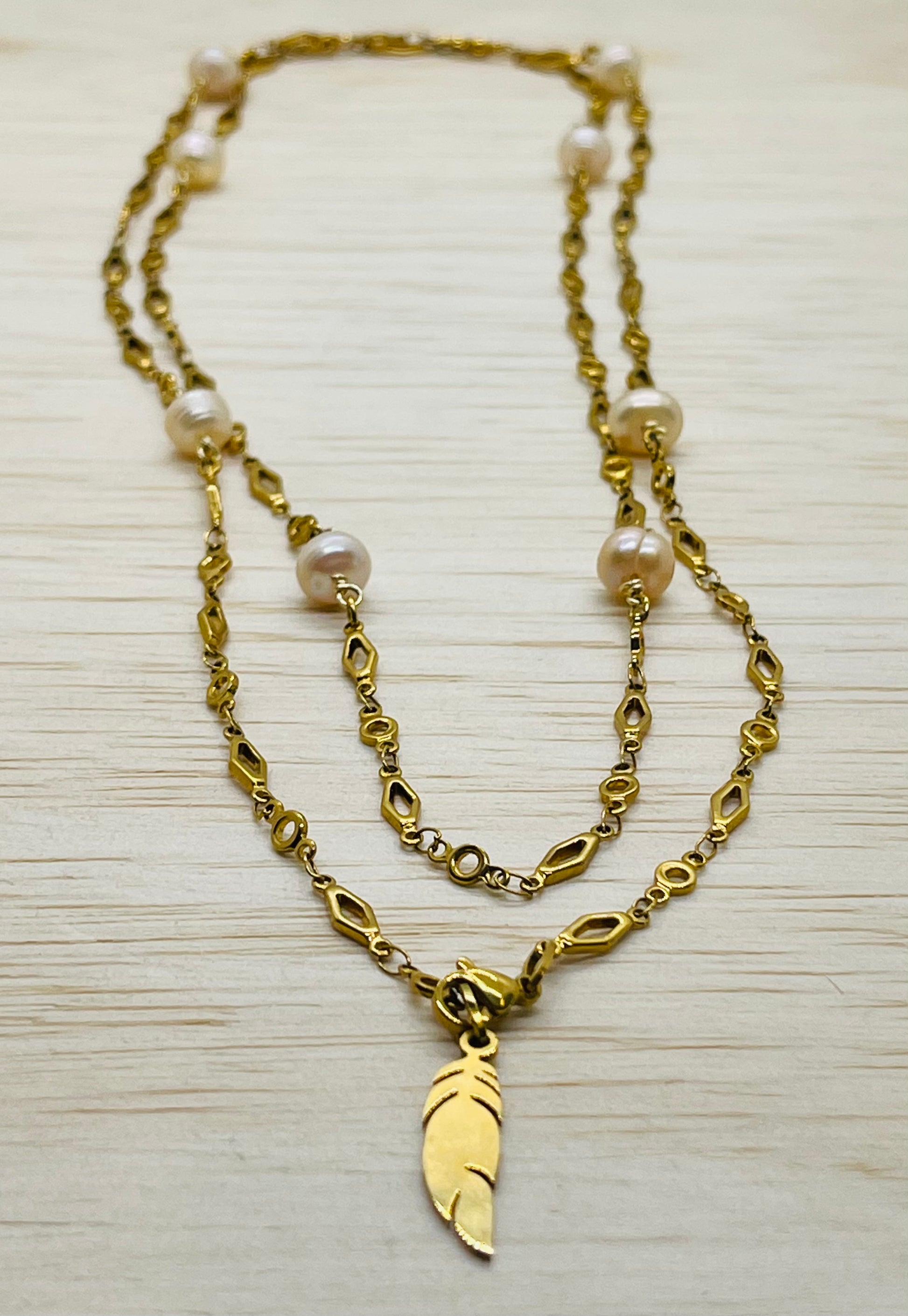 *Gold stainless steel chain, it’s a double wrap necklace with lobster clasp, allowing you to adjust it to your preference.